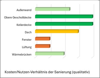 Vor allem ist es aber wichtig, die richtige Maßnahmen-Strategie zu wählen, damit sich ein optimales Kosten-Nutzen-Verhältnis einstellt. Besonders wenn man sich für eine schrittweise Sanierung entscheidet, ist es wichtig die richtigen Prioritäten zu setzen.